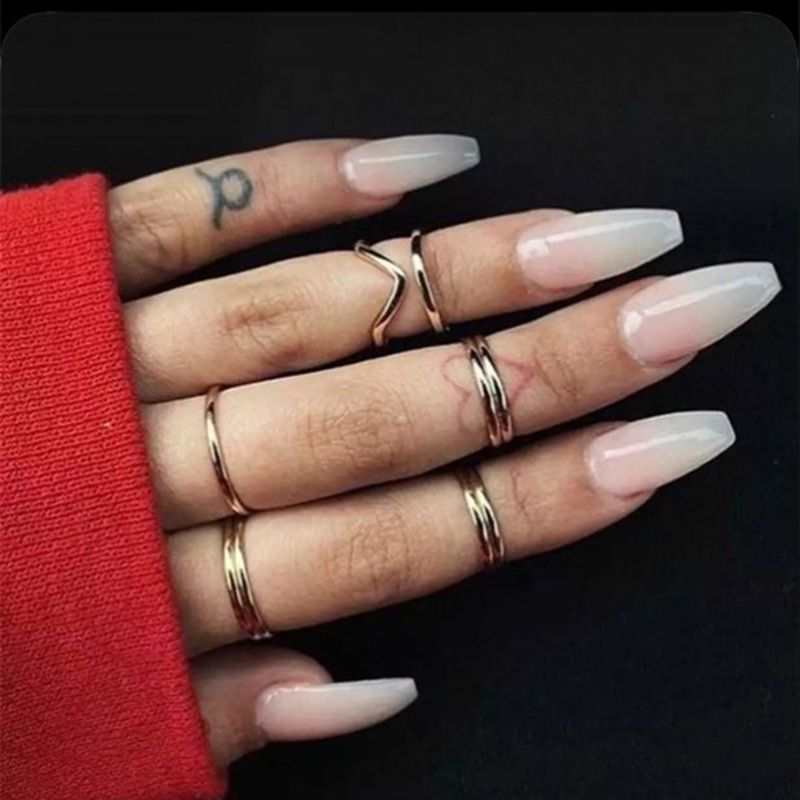 Gold Rings Acrylic Matte Nails Nails Skull Rings Acrylic